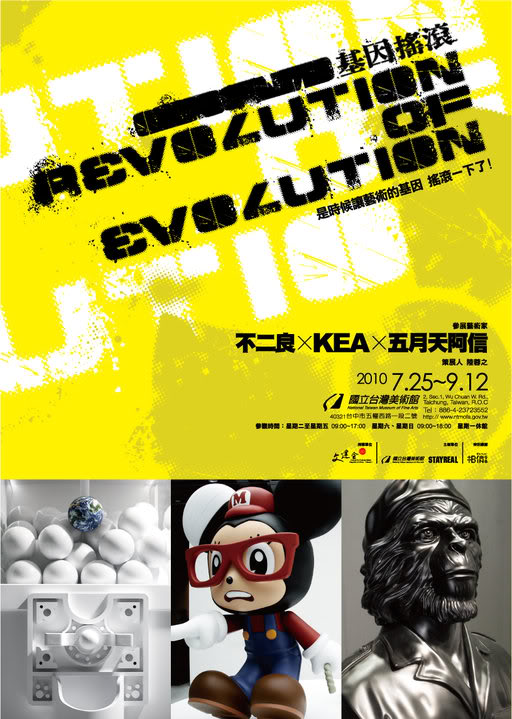 Exhibition Dates: 25th July ľ 12th September 2010 Curator: Victoria Yung-Chih Lu /National Taiwan Museum of Fine Arts. -- Revolution of Evolution: a Joint Exhibition by No2Good, KEA, and Ashin.